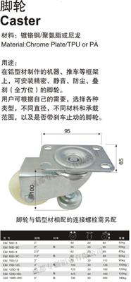 在鋁型材制作的機器、推車等框架上,可安裝精密、靜音、防塵、疊剎的腳輪。